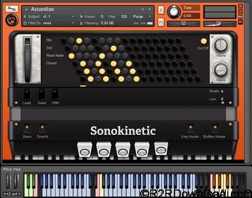 Sonokinetic Accordion KONTAKT Sonokinetic proudly presents ‘Accordion’. The accordion is an instrument that has been on our ‘to do’ list for quite some time. The instrument can provide you with a very nice ‘couleur locale’ whenever you need to give a song that French twist. The accordion brings a breath...