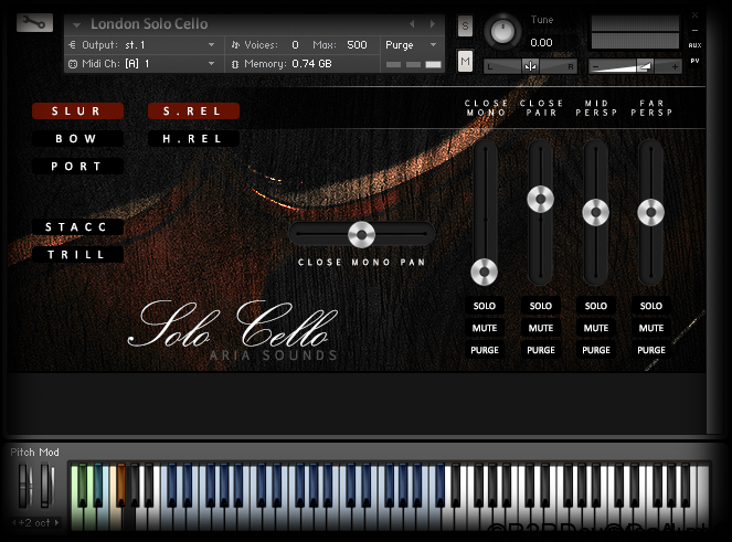 ARIA Sounds Cellist Solo Cello KONTAKT Aria’s “Cellist”is a wonderfully sampled solo cello, designed for Kontakt 5 and above, and the first to come of our VST strings. It comes complete with three true dynamic levels, each with up to four round robins, giving a staggering twelve true variations pernote!...
