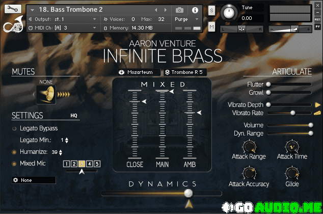 Infinite Brass was chromatically sampled at 48 kHz/24-bit. In spite of all the listed features, these instruments are some of the lightest you’ll ever use, totaling 14.0 GB with only ~50 MB of RAM used per instrument.