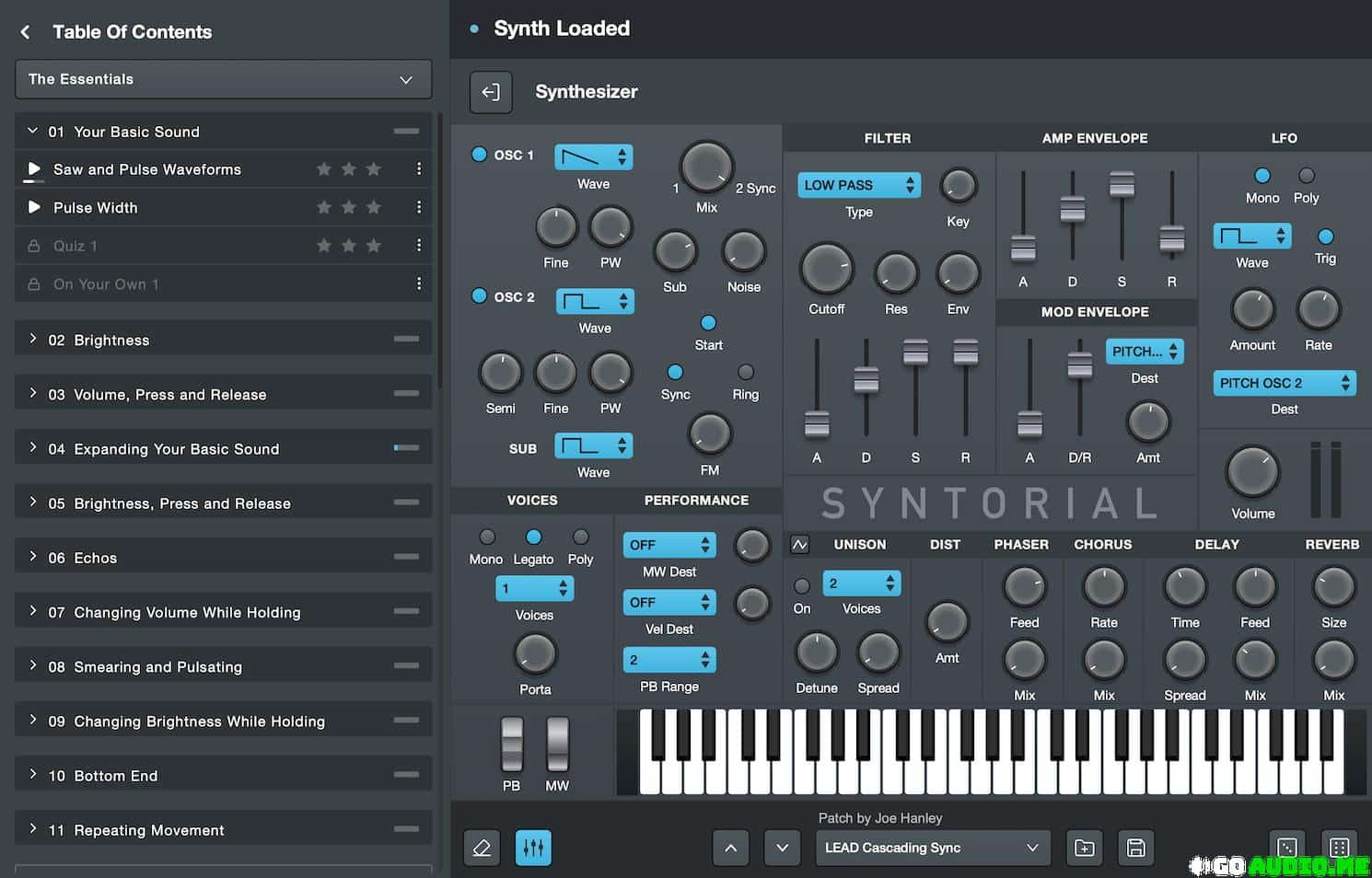 Syntorial is video game-like training software, that will teach you how to program synth patches by ear. With almost 200 lessons, combining video demonstrations with interactive challenges, you’ll get hands on experience programming patches on a built-in soft synth, and learn everything you need to know to start making your own sounds with ease.