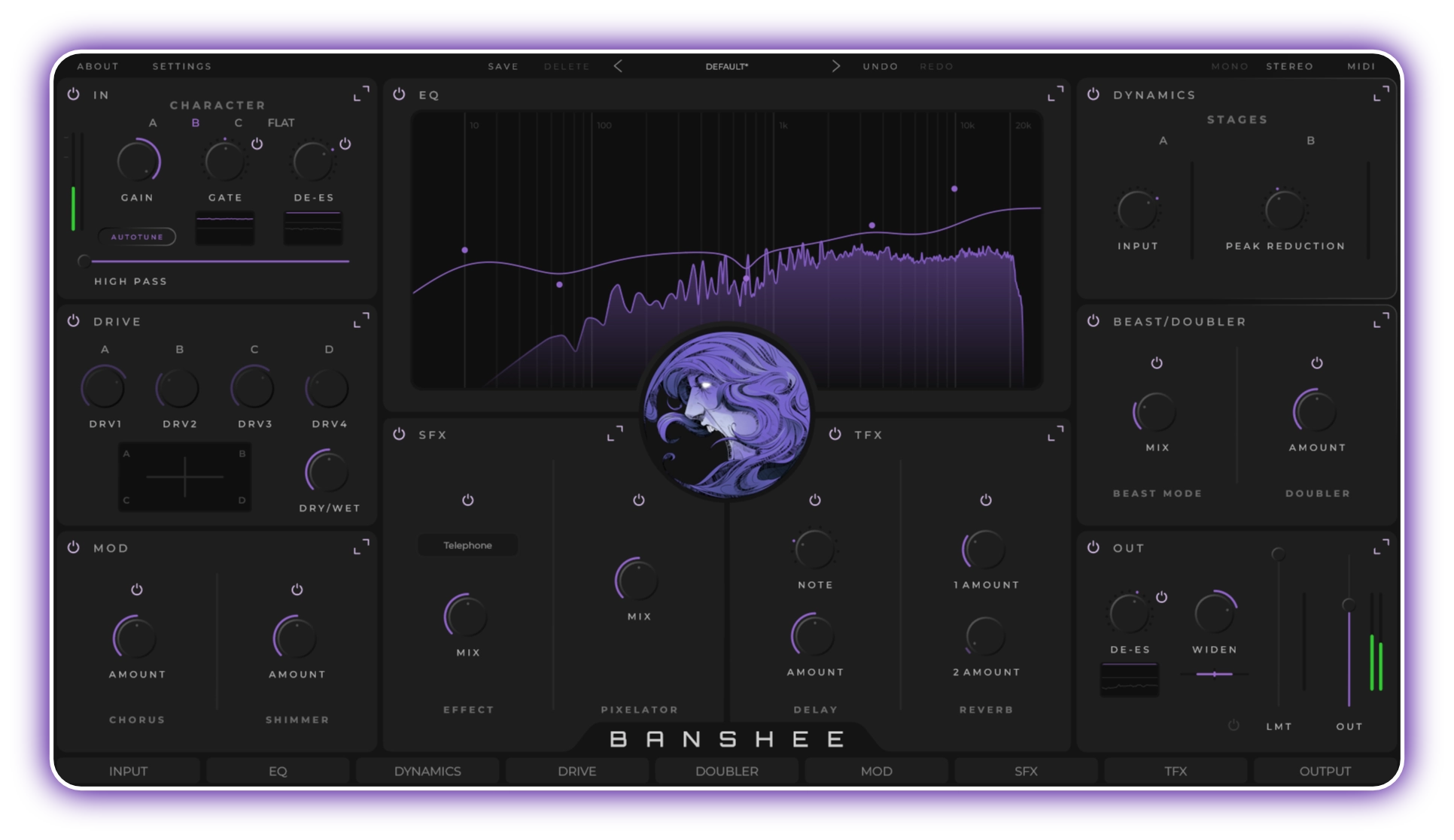 Banshee PRO — Professional Vocal & Production Suite End-to-end vocal chain. Re-orderable workflow. Nine expandable modules.End-to-end vocal chain. Re-orderable workflow. Nine expandable modules. Graphic equalizer with user-programmable frequency points. Designed for both corrective EQ and broad tonal sculpting..Dual compression engines modeled after distinct analog philosophies: a fast, peak-sensitive FET style for transient control, and a program-dependent optical style for smooth leveling. Configurable routing in series or parallel.