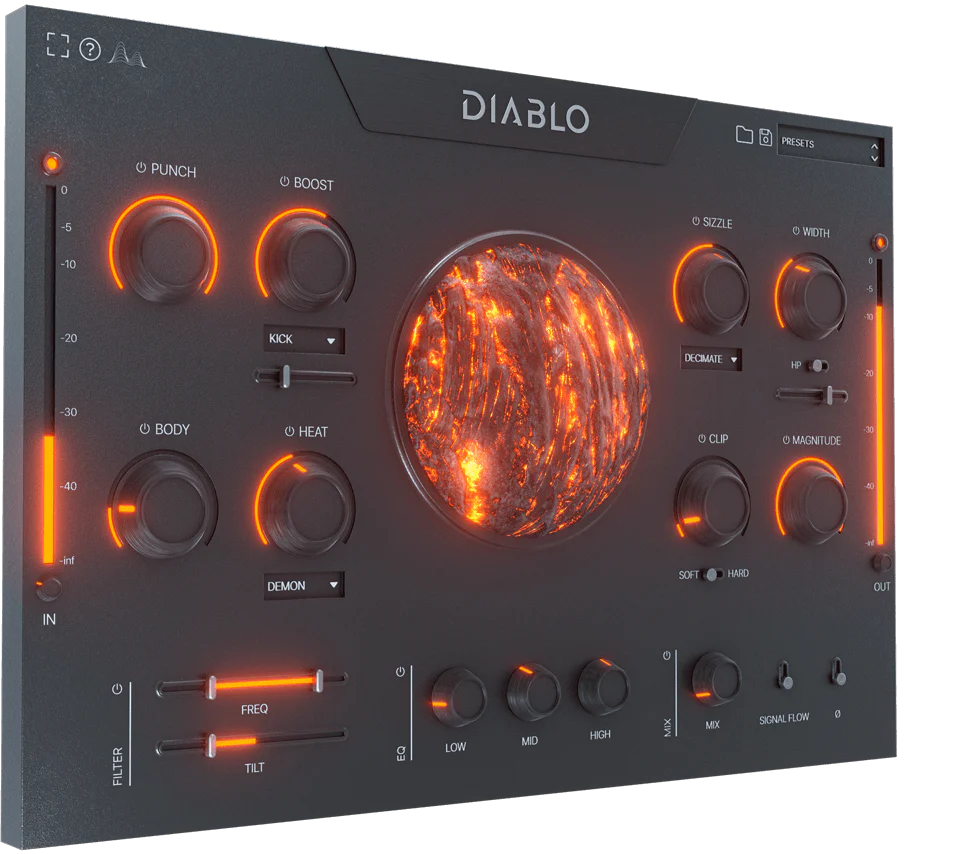 From subtle warmth to aggressive clipping, DIABLO’s processing chain lets you dial in the perfect balance of impact and character in seconds.