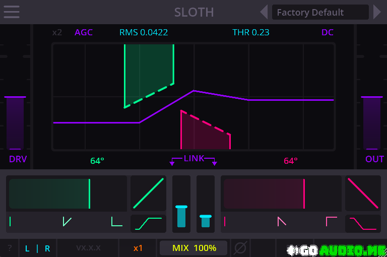 SLOTH provides up to 16X oversampling to avoid aliasing artifacts. This allows the processing to stay as clean as possible.