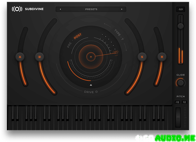 100 Presets from SUBDIVINE are divided into two groups: Analog – sampled from some of the best analog synths and Digital – sampled from some great digital instruments. Every preset has its own character and unique sound that can be formed with ADSR envelope and enhanced with Drive. And of course, there’s glide and a pitch wheel.