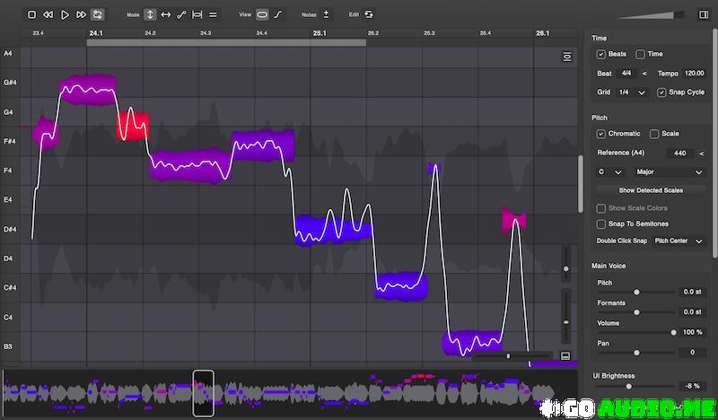 Vovious automatically detects the scale of your vocal recording. You can use this scale to tune the notes and optionally display the corresponding colors