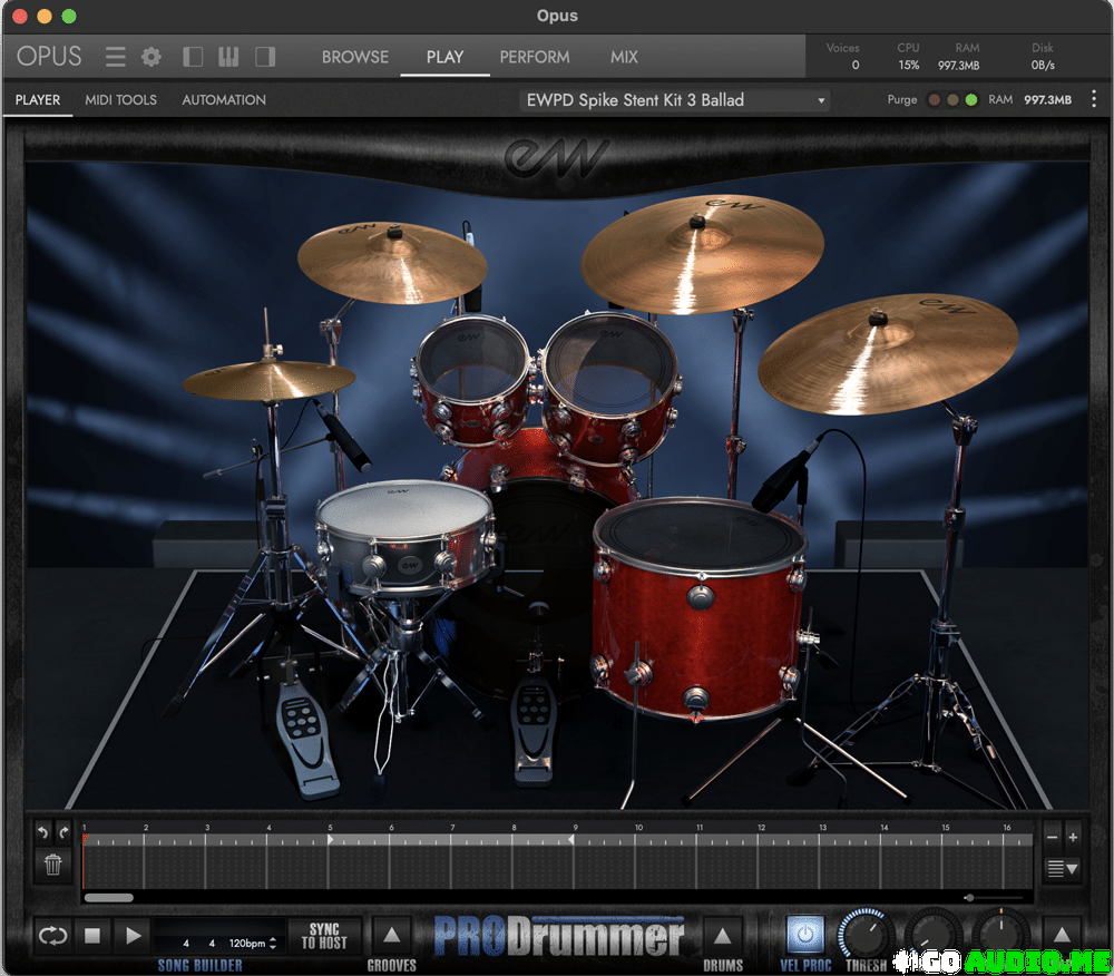 ProDrummer Volume 2 includes Craviotto, Ludwig, Tama, Slingerland, Gretsch, Istanbul and Zildjian, drums, hi-hats and cymbals recorded in 3 different rooms. The sound shaping options in the ProDrummer Mixer are unparalleled with the usual high quality you expect from EASTWEST. All drums have their own channels with individual processing and routing.