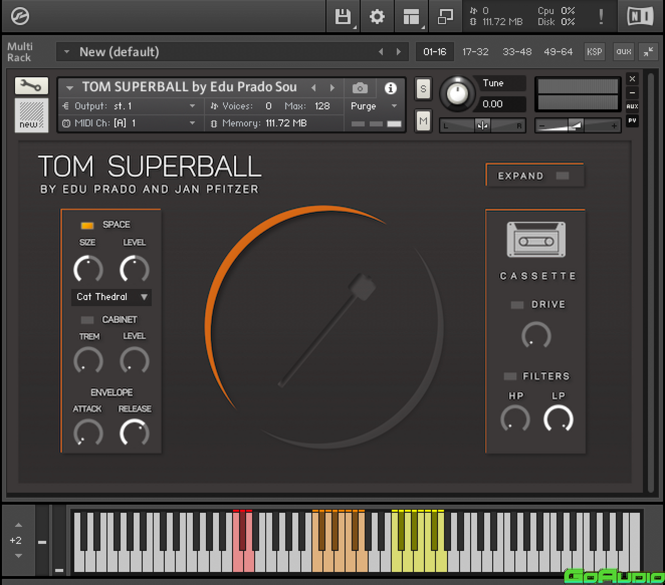 The Tom Superball is a creative sound-design library, part of a series of extended percussion sample libraries. It consists of a beautifully sampled tom-tom played with a superball mallet (also known as the resonant mallet). A highlight of this library is the “Cassette” feature, which enables the samples played through the vintage analogue Grundig Cassette Deck, adding a lot of depth and harmonics to the sound.