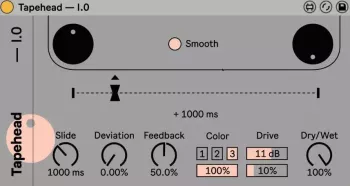 Tapehead works in-line and is designed to recreate the dub effect of parallel mixing with a tape machine. It features a moving tapehead that simulates the process of recording to and playing back from tape, allowing you to easily incorporate a tape feeling into your mix.