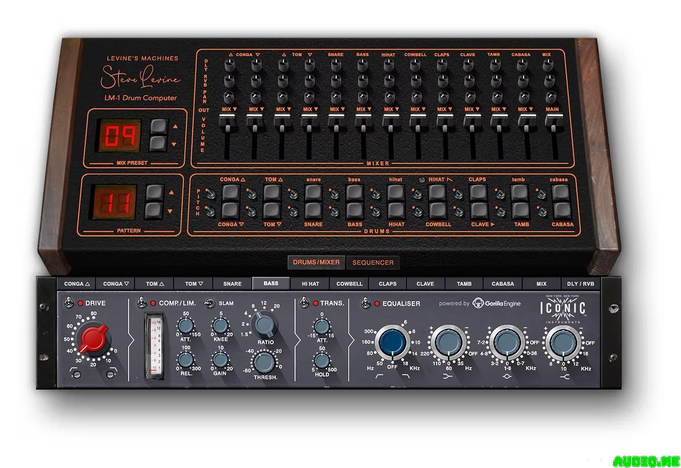 The sound of the Levine’s Machines – Drum Machine is instantly recognizable, and it can be tuned and manipulated (just like the original) to create a unique footprint for your tracks. But in addition to the original sounds and sound-shaping, the Levine’s Machines – Drum Machine by Iconic Instruments offers a full-featured sequencer, and a full mixing environment, with channel and mix bus effects chains, which include Drive, Compressor/Limiter, Transient Control and 4-band British-style EQ, all modeled from specific classic gear that Steve used in the 1980’s. There are channel and mix bus send effects, which are emulations of Steve’s most-used 80’s-era digital delay and reverb units. Each channel and effect can be bused within your DAW to a unique output, so that you have the option of printing or mixing in your DAW, rather than within the Levine’s Machines – Drum Machine. And finally, the Levine’s Machines – Drum Machine comes packed with 20 Mix and Pattern presets, crafted by Steve himself, to give you ready-to-use drum sounds, or to use as a starting point for your tracks.