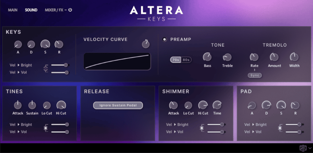 Altera Keys places a treasure trove of distinctive keyboard sounds at your fingertips. We used boutique synthesis and physical modeling to create sounds from 20 classic core instruments inspired by the Rhodes, Clavinet, Wurlitzer, DX7, JD-800, and many other keyboards that defined the classic sounds of the 70s and 80s.
