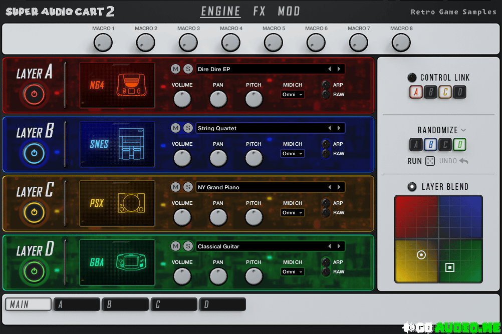 The legendary 8-bit, 16-bit, and 32-bit/64-bit eras of gaming in sample library form.