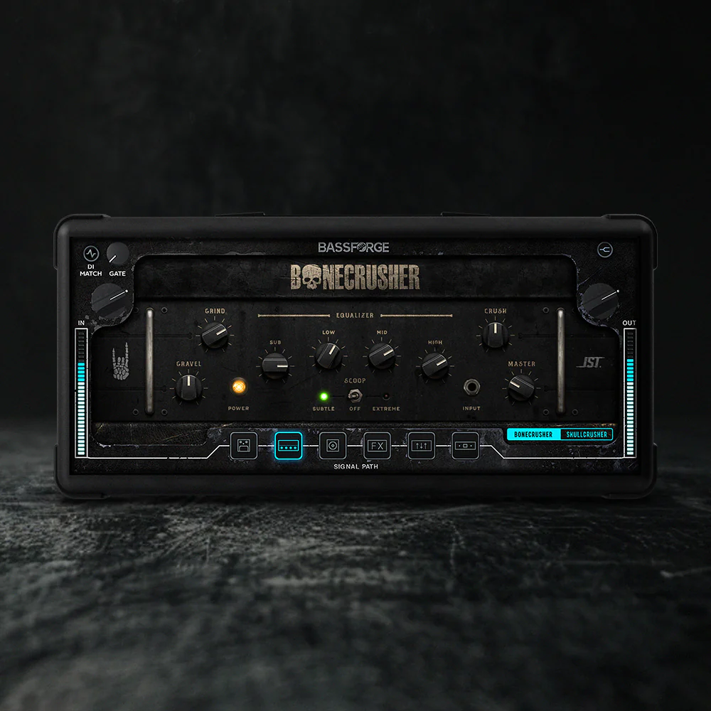 Bassforge Bonecrusher is a specialized bass processing suite dedicated to the powerful and demanding world of rock and metal production. Its dual-amp design delivers everything from tight, aggressive modern metal tones to warm, vintage-inspired rock sounds. Built for producers who demand both clarity and weight in their mixes, Bassforge Bonecrusher combines advanced DI matching technology, multi-stage EQ, and dual-band compression to give you complete control over your bass tone. No matter if you’re crafting crushing modern metal or classic rock anthems, Bassforge Bonecrusher provides all the tools needed to build a solid foundation for your mix.