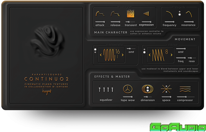 Continuo 2 follows the concept of creating complex sounding cinematic textures with a fresh new look and super intuitive interface. Based on exceptional quality piano recordings, analog synths and various sound design tools. Build massive modulations, ethernal soundscapes, hybrid keyboard themes from super quiet scores to enormous trailer sounds. Created in collaboration with the multi-instrumentalist composer and sound designer iamyank.
