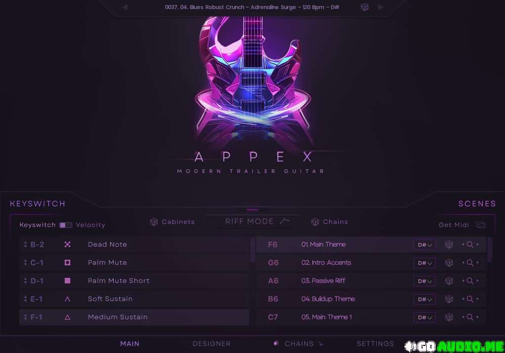 APPEX – Modern Trailer Guitar is a professional guitar library designed for composers and producers aiming to elevate their musical compositions to the next level. This instrument combines the power of a playable 8-string guitar with a unique Riff Designer, a riff-playing mode via MIDI signal, and an extensive collection of presets and templates that can be easily modified. From aggressive metal riffs to cinematic and mysterious sounds—all within a universal management ecosystem.