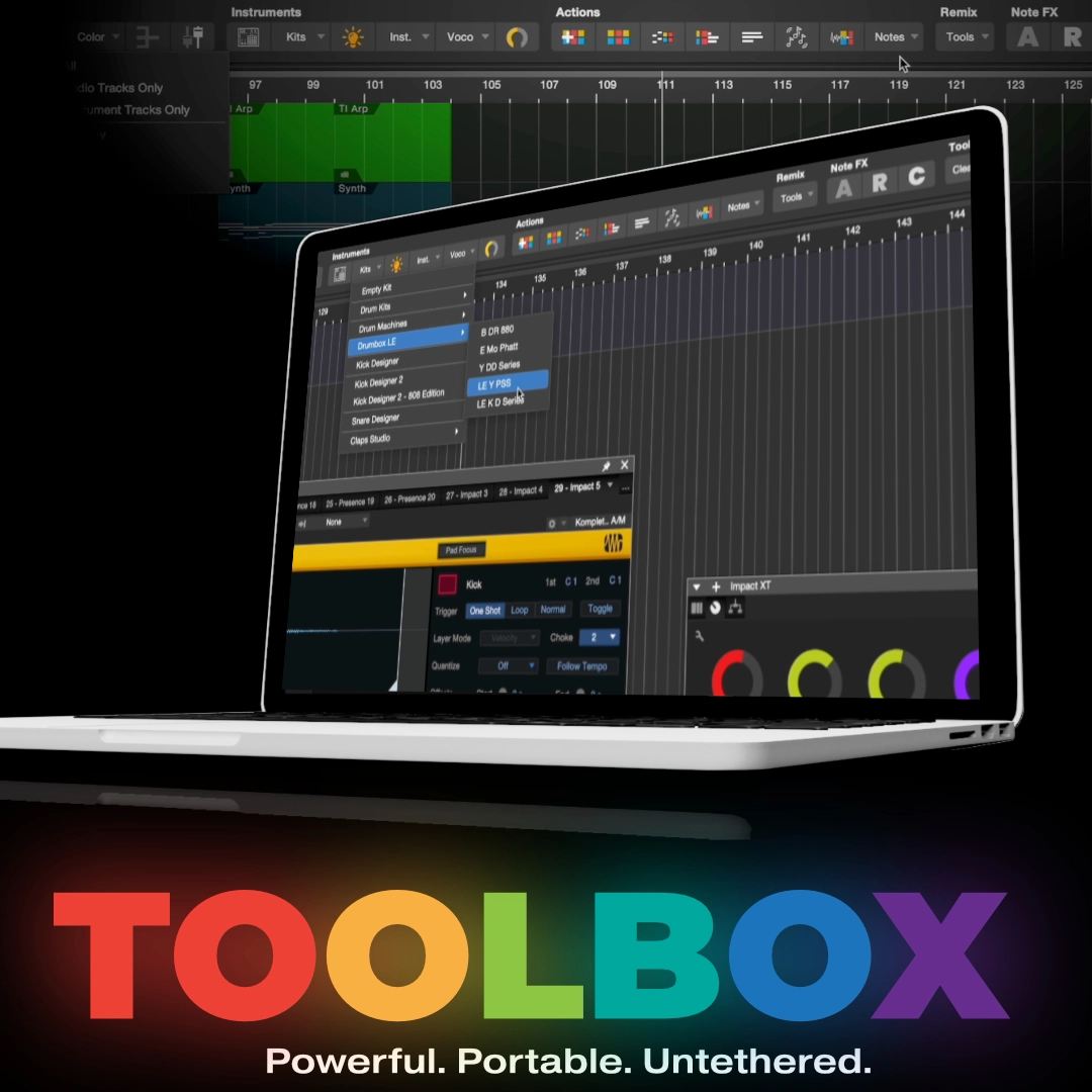 Toolbox, is not just an instrument… it’s a production system, an extremely well organised environment developed exclusively for Studio One® users.