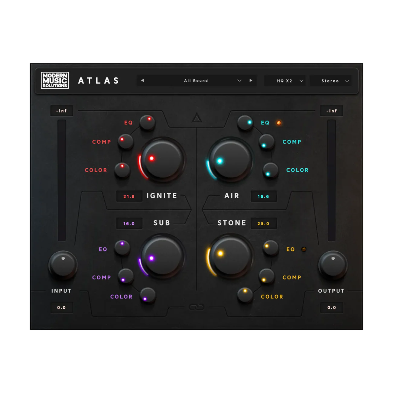 Atlas is a Creative Tone-Shaping Engine Built Around 4 Macro Sections.