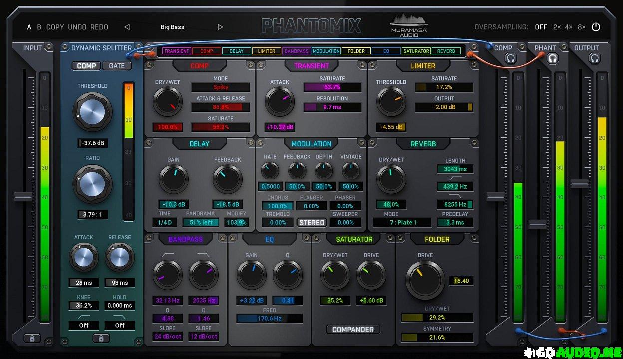 We all love a bit of saturation, distortion or limiting, but it’s a slippery road – too much makes everything horrible. So, how about not drowning everything in some sort of distortion and giving the mojo only to the prominent parts? Phantomix lets you easily give some smack to the transients, but leaves the rest intact, making things sound rich but not distorted.