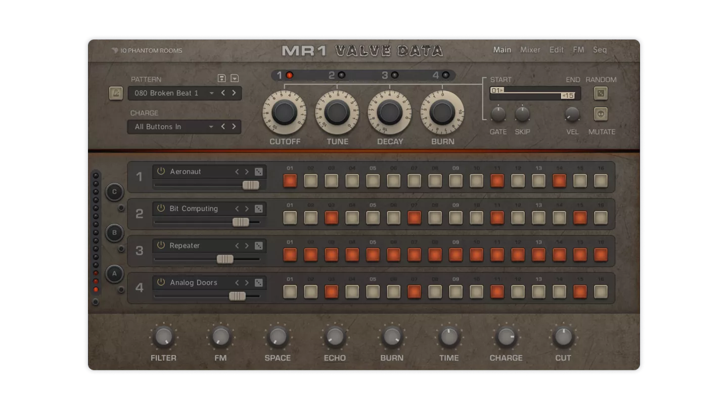 From 10 Phantom Rooms’ new Modular Rhythm series, MR1 Valve Data leads the way in a new approach to creative drums. The real-time features let you morph parameters with just one control, for totally fresh sounds.