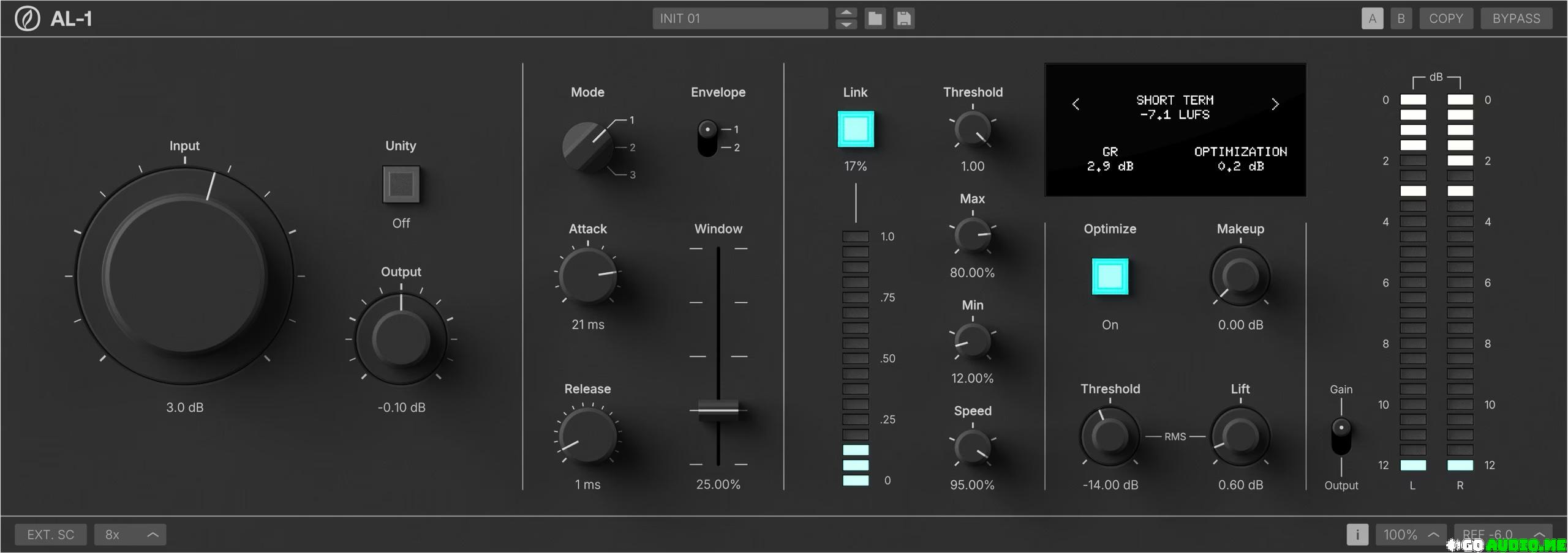 The AL-1 utilizes a new strategy to retroactively reshape samples around peaks for greater fidelity under pressure. Retain more low end and transients keeping attacks clear and releases natural.