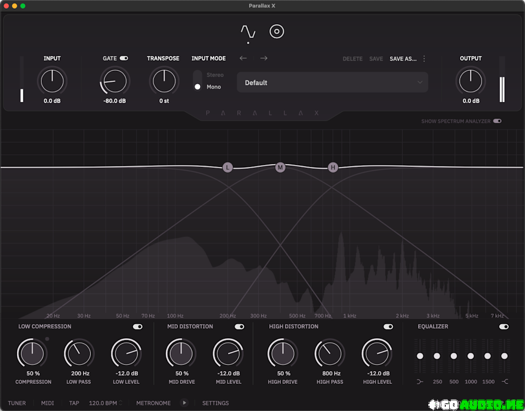 The mid and treble bands are processed separately using our proprietary tube modeling technology, resulting in rich harmonics and a natural response: