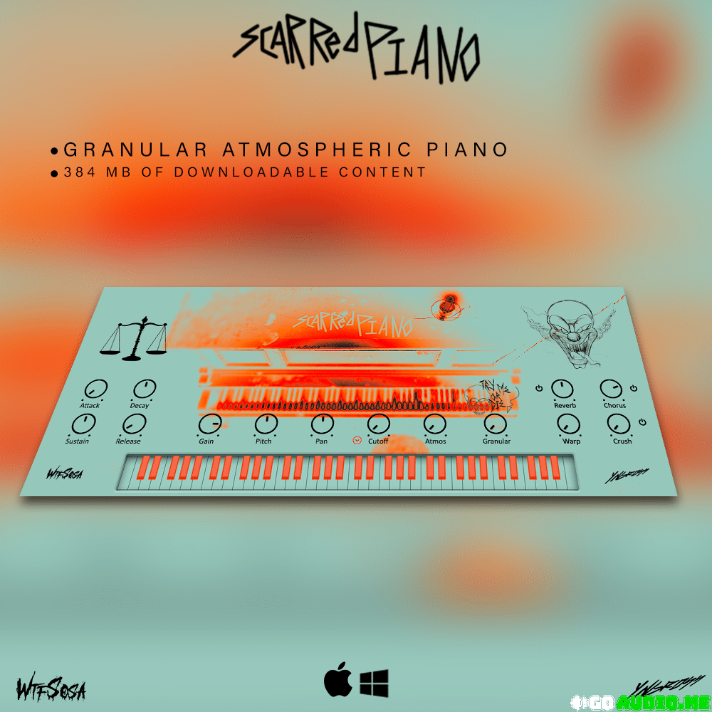 Scarred Piano Comes with 6 very simple but powerful intuitive effects built into one knob like Reverb, Chorus, Warp, Crush, Atmos, and Granular.