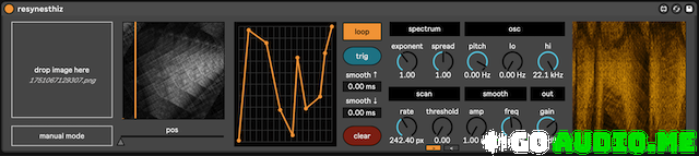 resynesthiz is a Max for Live Instrument device for converting images into sound, with the ability to mangle the sound beyond recognition with its source image through additive synthesis. Images loaded into the device can be scanned (non)linearly through a function editor or manually with a MIDI-mappable slider.