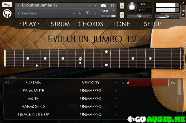 Evolution Jumbo 12 is outfitted with our Evolution guitar engine which provides you with a wealth of appointments: an innovative strumming pattern editor, automatic chord detection, and a robust effects engine. The library includes many factory presets for ready-to-use classic and modern 12-string acoustic guitar tones that fit right into the mix.