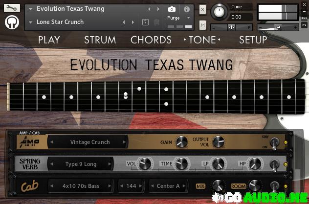 Evolution Texas Twang features a custom single cut Tele-style guitar with dual single-coil pickups. The bridge pickup gives you that nasally twang perfect for percussive chicken picking and bright crunchy tones, while the neck provides you with a juicy, full sound just right for mellower tones. Because we recorded both pickup signals separately you can dial in any blend of the pickups you want.