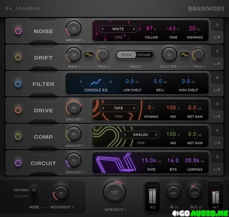 bx_tonebox exists for producers who want their music to feel alive. Digital audio can often be too pristine, and bx_tonebox brings back the charm of imperfection: wobble, grit, ear-catching sonic instability and movement that is often the missing ingredient to make a static mix exciting again.