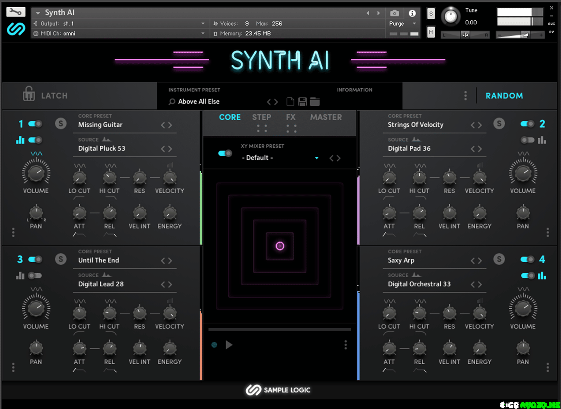 - Quad-core audio engine with Step & FX Animators, LFOs and XY Core Mixer