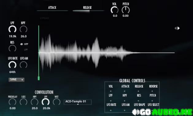 The One Shot SFX instruments in Hellen feature a per-sample control on any parameter (Volume, Pitch, Low Pass Filter, High Pass Filter, LFO and Volume Envelope, Straight/Reverse play), plus the possibility to globally control any parameter by using the ‘Global Controls’ window. By using the Extend switch, you can play any chosen sample chromatically along the keyboard.