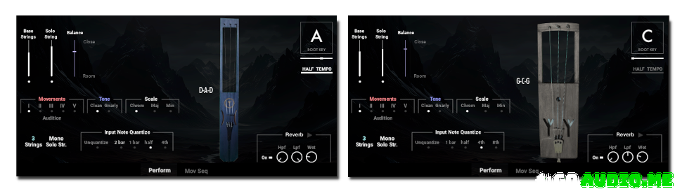 Rather than sampling long sustained notes, in Nordic Folk Strings we have sampled rhythmic movements, in order to preserve the raw authenticity of the tagelharpa. The movements loops are tempo synched to the DAW and can be combined creatively by using our custom scripted Rhythmic Legato and the innovative Movements Sequencer.