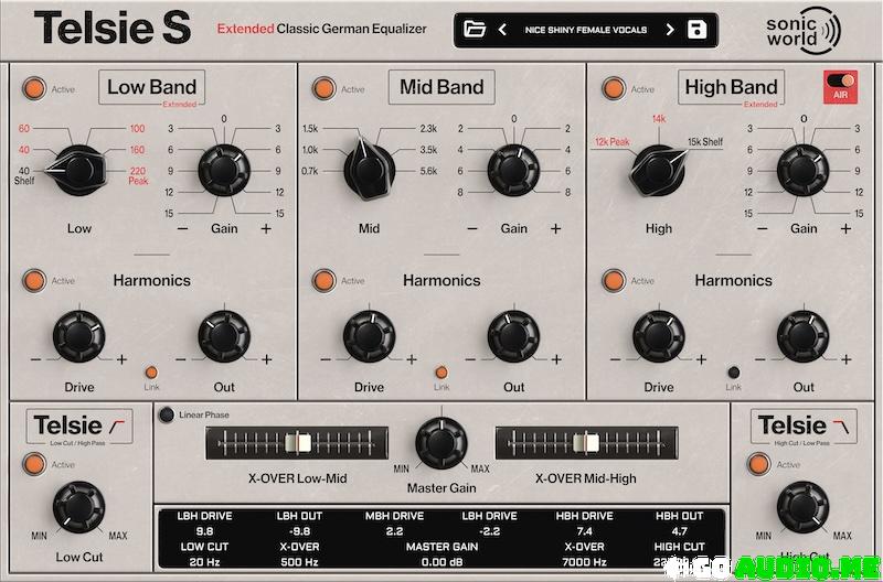 The SonicWorld Telsie S is a 3-band equalizer plug-in based on the famous Siemens W295b discrete class A equalizer from the 1970s.