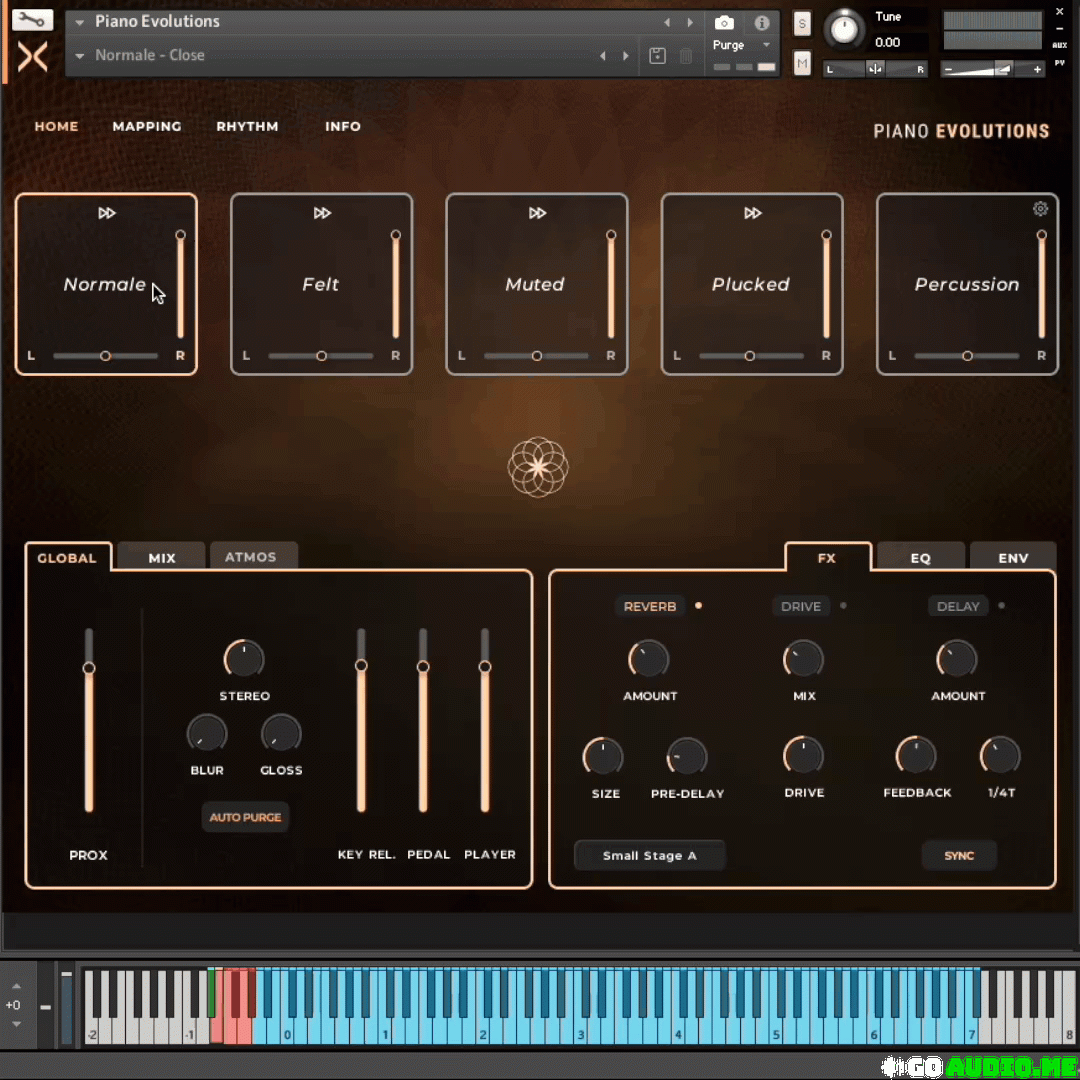 Shape your sound with a versatile palette of articulations – Normale, Felt, Muted, Plucked, and Percussion – each offering its own character, texture, and creative personality. Each can be reversed to a custom amount.