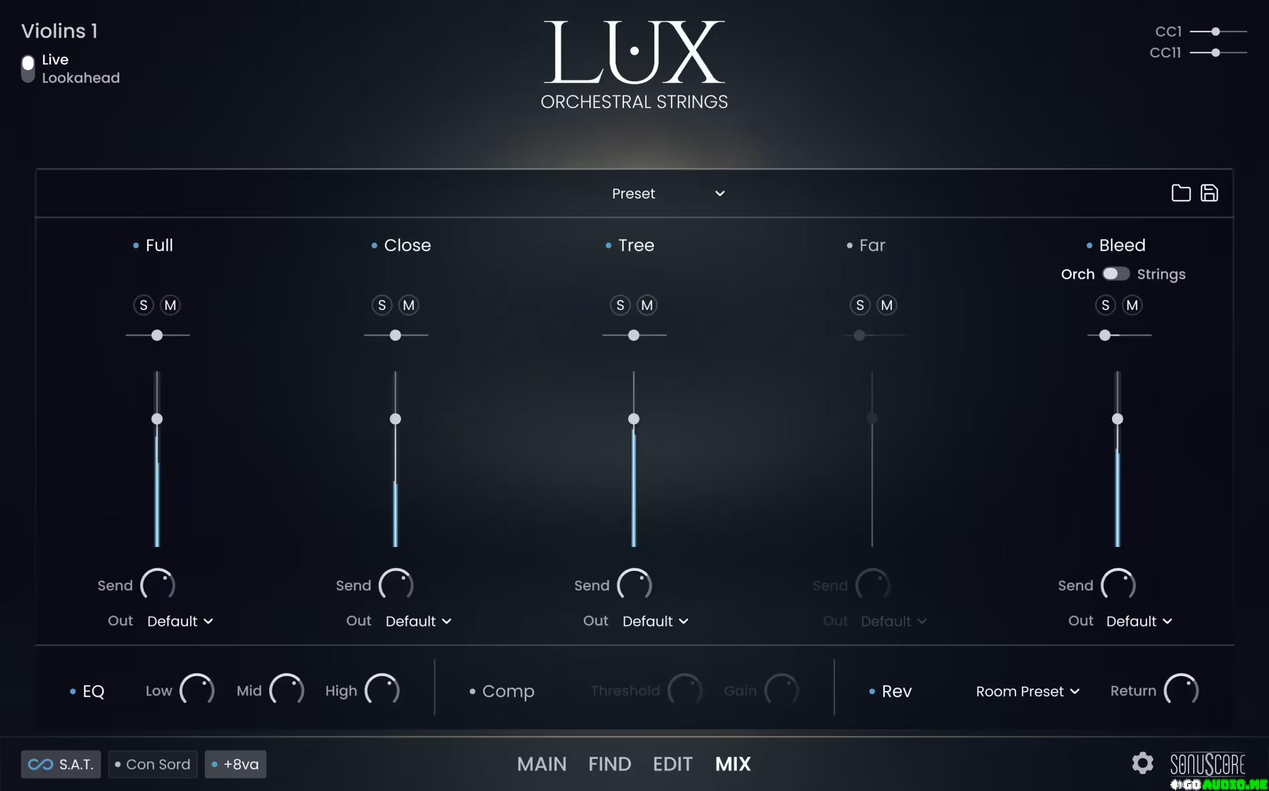Only a few libraries offer a bleed option, and usually only in a limited way. With LUX Orchestral Strings we wanted to capture the true experience of a full orchestral scoring session, so we took it much further.