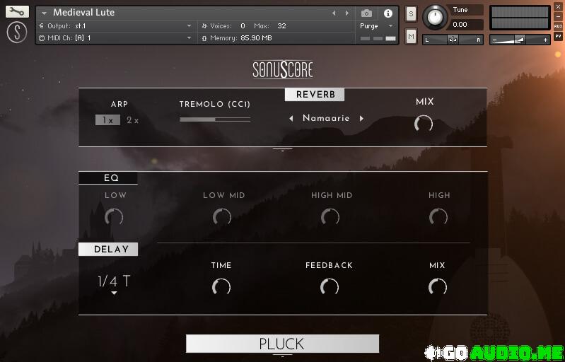 MEDIEVAL PHRASES LUTE & THEORBO includes a whole set of modern tools, including 4-band EQ, delay, and reverb. Have instant and easy access to the most essential features to craft your sound to perfection.