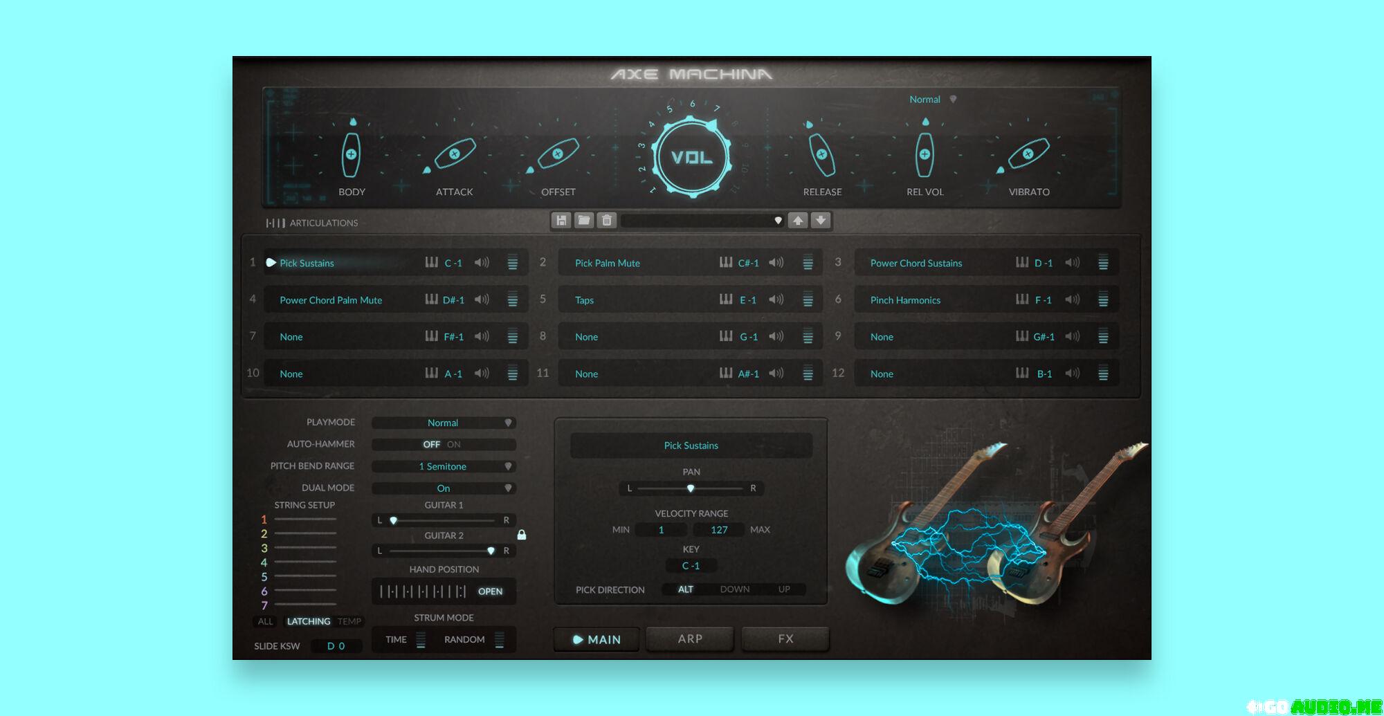 Axe Machina is a thunderous sampled custom-made electric guitar, built to deliver uncompromising metal power. This instrument captures the raw intensity of a swamp ash body, seven-string guitar in standard A tuning. Coming with loads of articulations and a distinctive character in DI and amped versions, it gives your productions a bold, powerful tone with undeniable metal attitude.