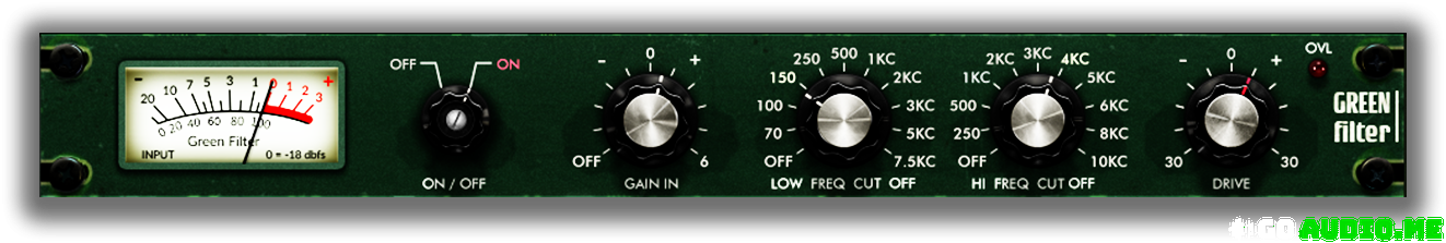 The Green Filter is based on a Passive filter, both high and low cut are available in a single instance. Green Filter acts as -20db (approx) shelf rather than a complete cut. This offers a unique sounding library, this can be seen in the pics below.