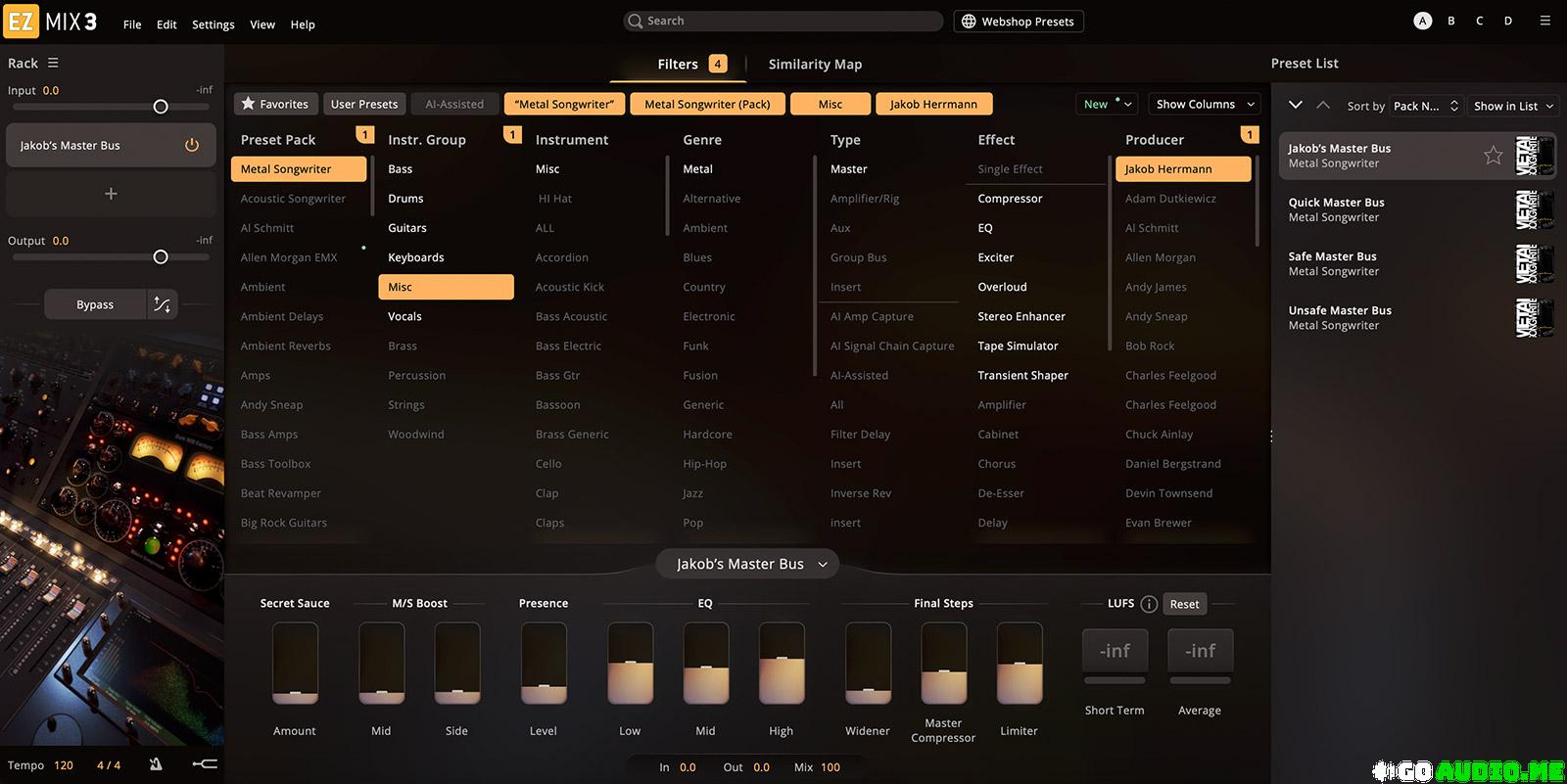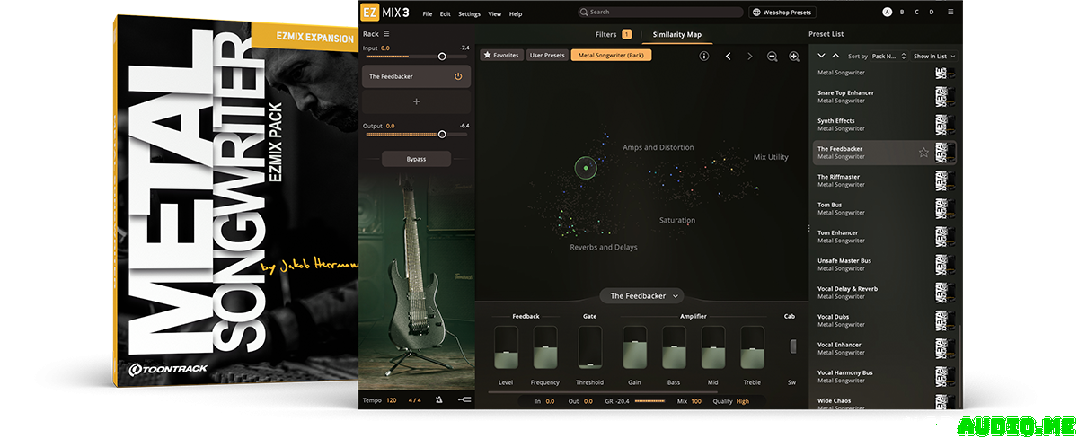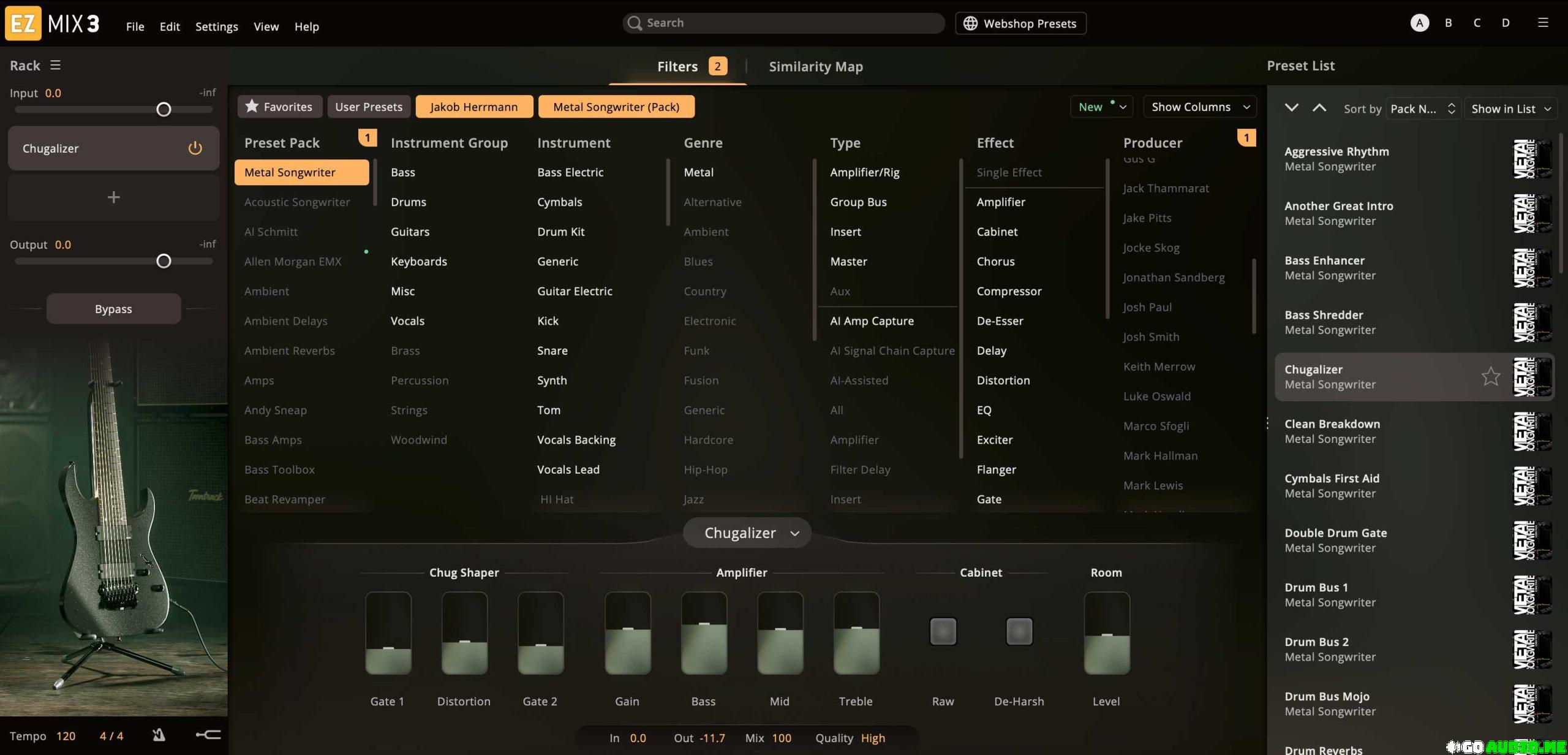 Expect a wide range of tones and tools: from pummeling modern metal rhythms to soaring leads and cleans, utilitarian bass presets, dedicated chains for vocals and effects and a selection of mix-fixing essentials – including cymbal “first aid,” snare and tom enhancers and drum bus treatments. As always, all engineered using the intricate network of effects and AI-enhanced tools under the hood of EZmix 3.