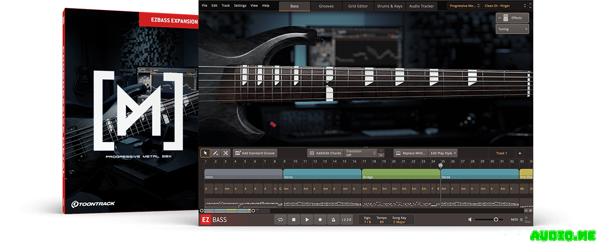 With this EBX for EZbass, we’re proud to deliver what we believe is the epitome of an instrument to meet those criteria – a six-string bass that musters the entire width from subtle expressiveness and articulation to raw, progressive power. In addition to the sounds, this EBX also comes with a MIDI library of riff-driven grooves unique to the product as well as a broad collection of presets for a wide range of tones, allowing you to get started writing and producing right off the bat.