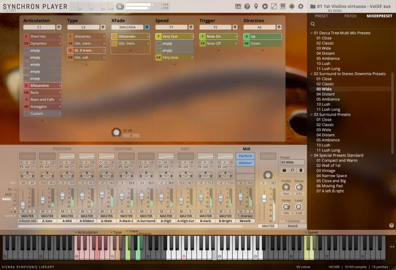 The recordings follow the same Duality principle of two separate ensembles performing on Stage A and Stage B simultaneously, giving you a variety of options to create your own blend or rely on perfectly pre-configured Mixer Presets.