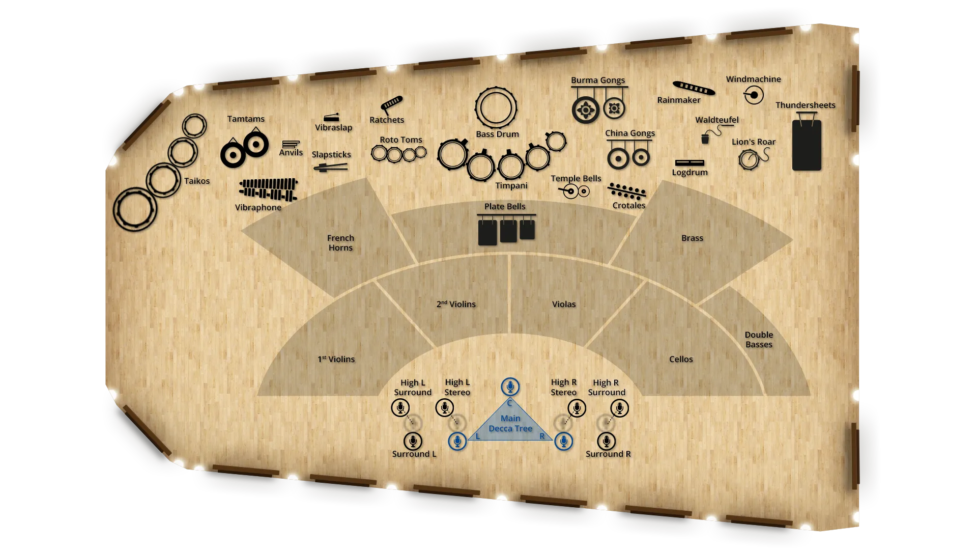 The five different sizes of timpani were sampled over the maximum playable range of approximately two octaves. Therefore, you may choose from up to three different timpani to achieve any given pitch. Single hits were recorded in open and muted variants with 12 dynamic layers and 4 round robins for single strokes. Apart from that, there are also static and dynamic rolls at your disposal.