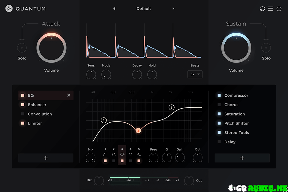 Quantum is an audio plugin that separates an audio signal into its attack and sustain parts. With 16 built-in high quality effects that you can apply to each path independently. Quantum redefines what’s possible in transient shaping.